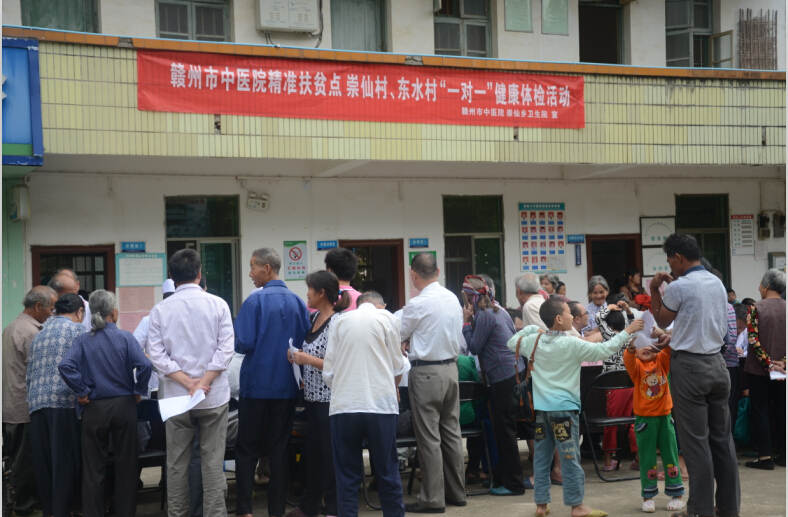 為貫徹市委、市政府關(guān)于扶貧攻堅(jiān)的相關(guān)精神,贛州市中醫(yī)院于2015年7月8日在醫(yī)院精準(zhǔn)扶貧點(diǎn)―信豐縣崇仙鄉(xiāng)崇仙村、東水村開展“貧困家庭健康關(guān)愛(ài)活動(dòng)”,為精準(zhǔn)扶貧對(duì)象家庭成員免費(fèi)提供每年一次全面健康體檢和疾病防治指導(dǎo),以緩解貧困家庭就醫(yī)難、亂就醫(yī)的現(xiàn)象。