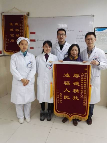 李奶奶為了表達(dá)對科室所有醫(yī)務(wù)人員的感激之情,特將寫有“厚德精技,造福人民”字樣錦旗送到了主治醫(yī)生賴春柏的手里,她激動(dòng)地說:“在這期間,我感謝你們精心地治療和無微不至地護(hù)理,也是通過你們讓我對中醫(yī)技術(shù)刮目相看,總之,用一句流行話就是――你們很牛!”賴春柏主任感嘆道:“奶奶,有您這樣的話就足夠了!”